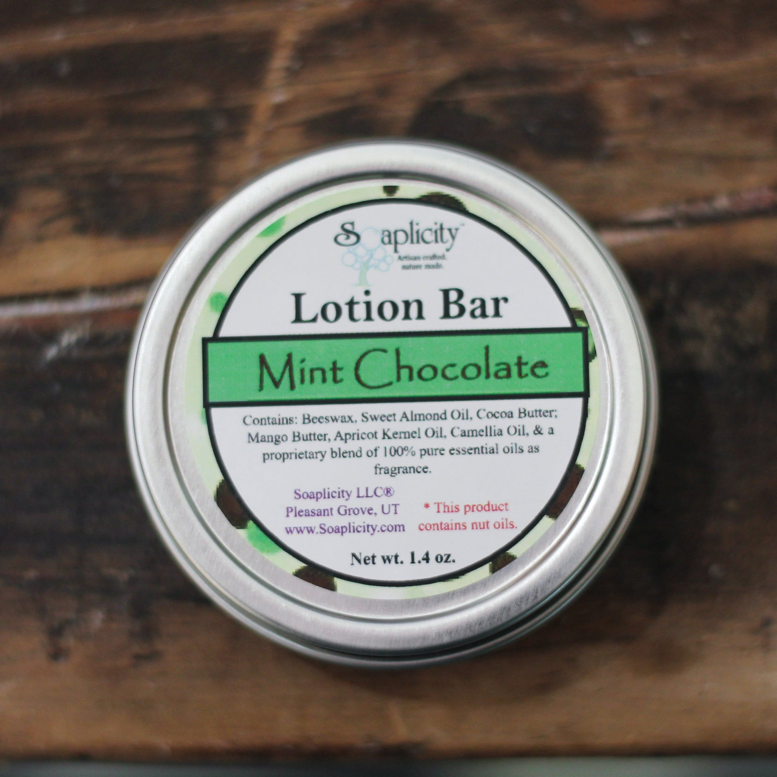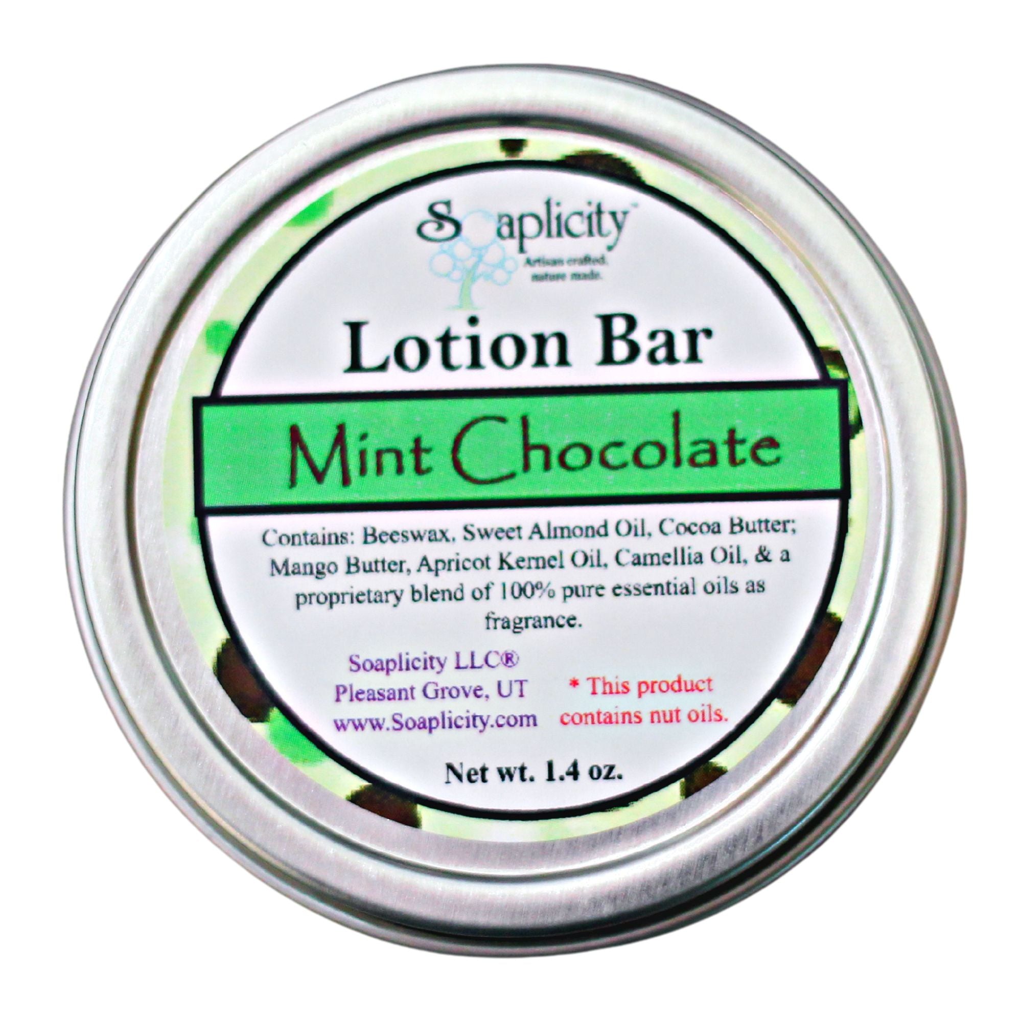 Made with unrefined cocoa butter and pure essential oils, our Mint Chocolate Lotion Bar is yummy goodness for hands and feet!