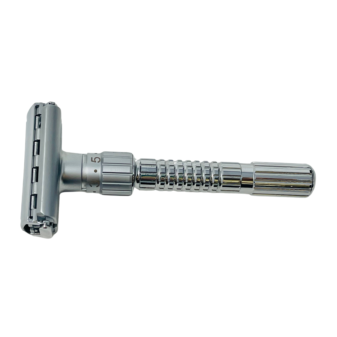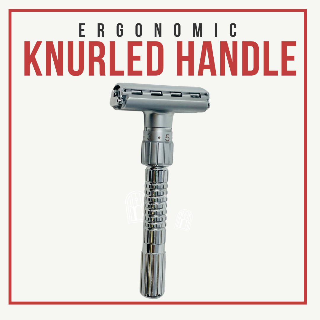Our newest Heavy Duty well Made Knurled Handle Butterfly Razor with Adjustable Tension 9 different settings -- Butterfly opening Excellent made Beautiful Matte / Polished Finish Heavy Duty Perfect blance Short handle for extra control